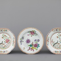 A set of 3 Chinese porcelain famille rose plates, Qianlong, 18th C.