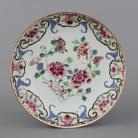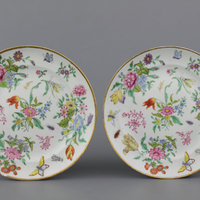 A pair of Chinese porcelain Canton plates with flowers and insects, ca. 1800