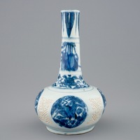 - The other cup with a x-shapes crack of ca. 4 x 7 cm and a superficial chip of ca. 0,2 x 0,8 cm on the rim.