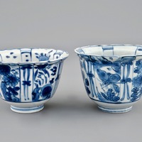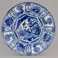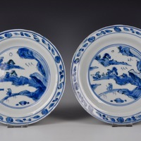 A pair of Chinese blue and white landscape plates, Ming, Jiajing/Wanli