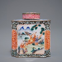 - The caddy in good condition with very small chips along the footrim, the base with minor losses around the feet.