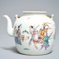 A Chinese famille rose teapot, Qianlong mark, 19th C.