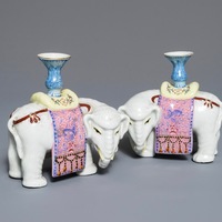 A pair of Chinese famille rose elephant-form candlesticks, 19th C.