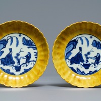 Three Chinese blue and white kraak porcelain plates, Wanli