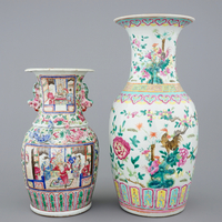 A Chinese famille rose teapot and four covered boxes, 19/20th C.