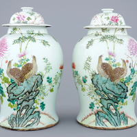- One with a part of the cover's rim glued, the pot in excellent condition.