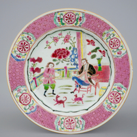 A Chinese famille rose plate with playing boys, Yongzheng, 1723-1735