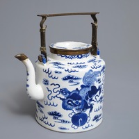 A Chinese blue and white Bencharong style teapot for the Thai market, 19th C.