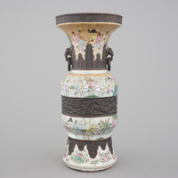 A Nanking famille verte relief-decorated hu-shaped landscape vase, 19th C.