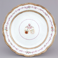 A Chinese export porcelain armorial alliance plate, 18th C.