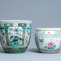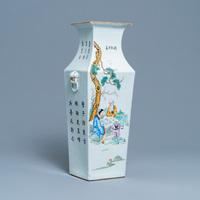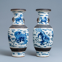 A pair of Chinese blue and white Nanking crackle-glazed vases with Buddhist lions, 19th C.
