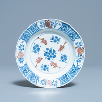 A Chinese blue, white and copper red ko-sometsuke 'fish' plate for the Japanese market, Transitional period