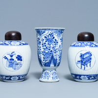 - The goblet or footed cup with two hairlines of 2-3 cm on the foot and another of ca. 2 cm running down from the rim.