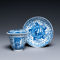 - The lotus saucer with various reglued breaks. The cup in very good condition with a few small superficial nibbles.
