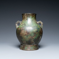 A Chinese archaistic bronze 'hu' vase with inscription, Ming