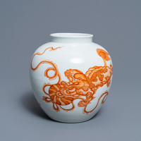 A Chinese iron-red 'Buddhist lions' vase, 20th C.