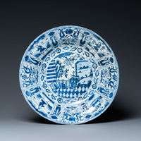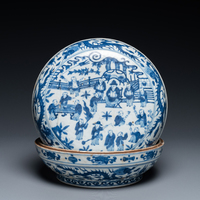 A Chinese blue and white 'hundred boys' box and cover, Wanli mark and of the period