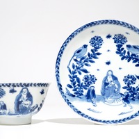 A Chinese famille verte café au lait-ground cup and saucer, Kangxi