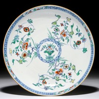 - The other with a tight 5 cm hairline in the upper left segment of the center of the plate, showing on the back as a T-shaped hairline of 5 x 1 cm. Not visible to the naked eye but showing up under UV light. Also with a few minor baking flaws.