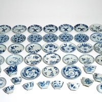 A Chinese blue and white bowl, 14 cups and 31 saucers, Kangxi and later