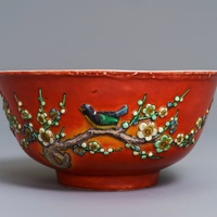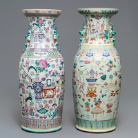 A pair of large Chinese famille rose 'immortals and cranes' vases, Republic, 20th C.