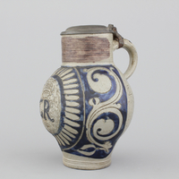 A Westerwald jug, decorated with historical panels, early 17th C.
