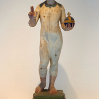 A tall sculpted wood figure of Christ with the globe, 19/20th C., Bruges