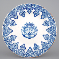 A massive French faience armorial dish, Rouen, 19th C.