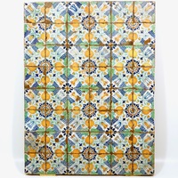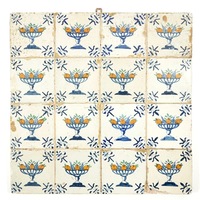 A field of 16 polychrome Dutch Delft tiles with tazza containing fruit, 17th C.