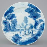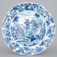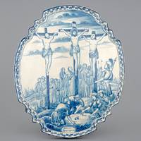 A large Dutch Delft blue and white Crucifixion plaque, Rotterdam, 18th C.