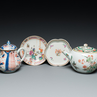A Chinese blue and white bottle vase, a censer, a bottle and a famille verte plate, Kangxi and later