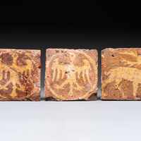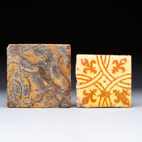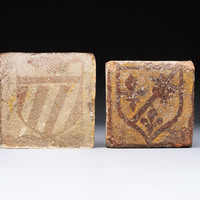 Two medieval slip-decorated tiles with the coat of arms of Burgundy and France, Flanders and France, 14/15th C.