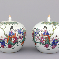 Deux vases couverts en porcelaine de Chine, Canton, 19e