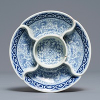 Un plat à condiments en porcelaine de Chine bleu et blanc, marque de Qianlong, 18/19ème