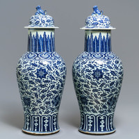 - Both vases in excellent condition with negligible minor superficial wear around the outer rim.