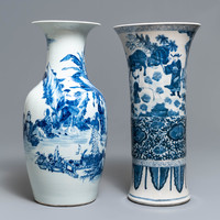 Deux vases en porcelaine de Chine bleu et blanc, 19ème