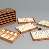 Un jeu de mahjong aux carreaux en os dans sa boîte en bois, Chine, République