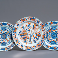 Trois plats en porcelaine de Chine de style Imari, Kangxi
