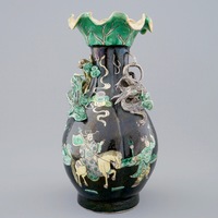 - With restored breaks on the top rim and some minor restorations to the top rim and to the applied dragons.
