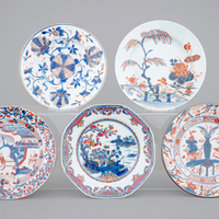 A set of 5 perfect famille rose floral plates, Qianlong, 18th C