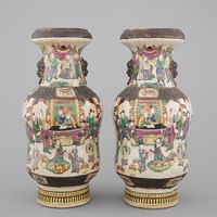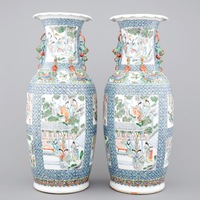 A pair of Chinese porcelain Canton famille verte vases, 19th C.