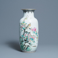 Une paire de vases couverts en porcelaine de Chine famille rose à fond jaune, marque de Guangxu, République