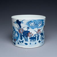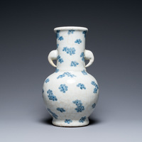 Un vase en porcelaine de Chine en bleu et blanc à décor de fleurs de prunus sur un fond craquelé, 18/19ème