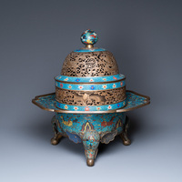 Un grand brûle-parfum tripod en émaux cloisonnés, Chine, 19ème