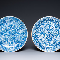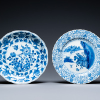 Deux plats en porcelaine de Chine en bleu et blanc, Kangxi