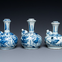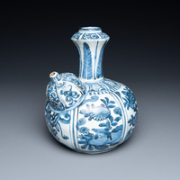 Un couvercle d'une boîte ronde en porcelaine de Chine en bleu et blanc à décor des '100 garçons', Wanli