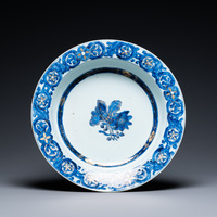 - The first with a consolidated ca. 6 cm hairline on the rim at ca. 5:30 o'clock and a small number of small superficial filled chips on the outer rim and to the underside of the rim. Otherwise excellent, the sound of the dish intact when tapped.