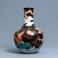 - With touch-ups to small chips along the rim and a restored ca. 10 cm hairline running down from the rim.