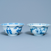 - The bowl on the left with five short tight 1-2 cm hairlines, one with a chip, and another large rim chip.