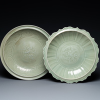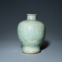 Un vase de forme 'meiping' en porcelaine de Chine céladon de Longquan à décor incisé, Ming